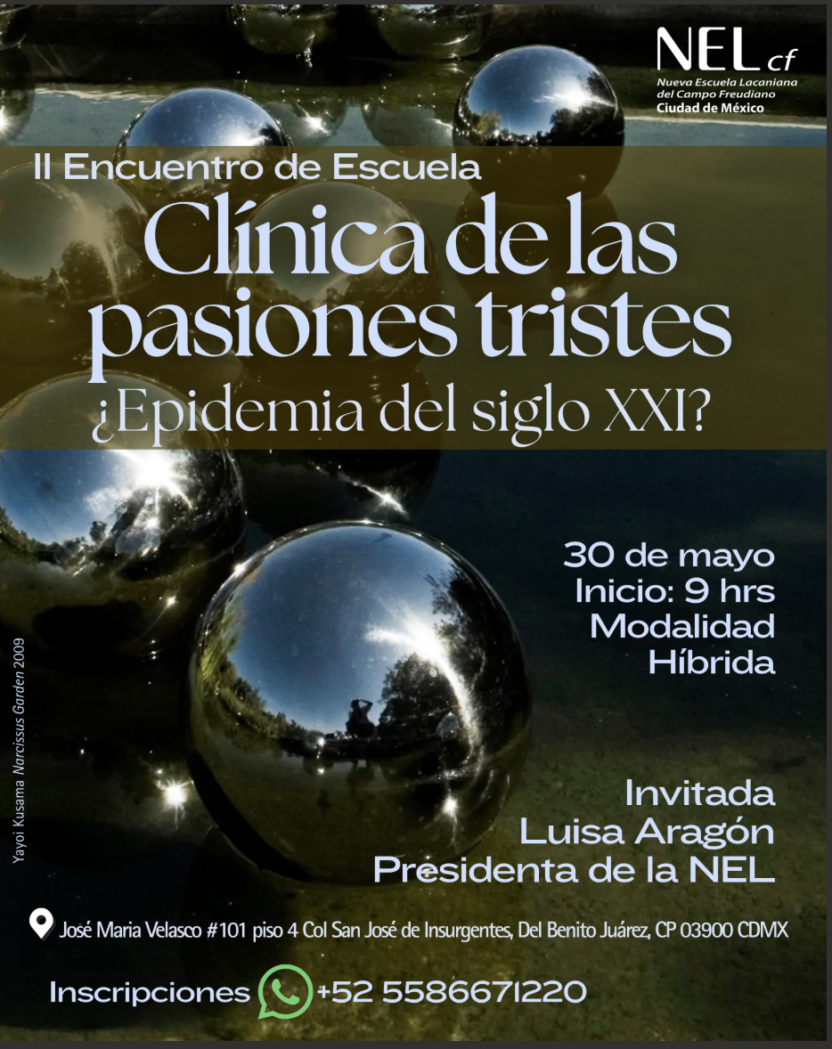 Nos proponemos explorar y dar cuenta en este II Encuentro de Escuela y, a la luz de nuestros días y nuestra práctica, de la clínica diferencial de las pasiones tristes propuesta por Lacan. Misma que transcurre por vías muy precisas, ya que su tratamiento implica un cambio de posición respecto del inconsciente, de la causa, la apertura de una pregunta. Pregunta que siempre acaba conduciendo a la suposición de que ese síntoma, fenómeno o acontecimiento tiene algún sentido, que por algo ocurre en ciertos momentos, no antes, no después. Que tiene una íntima relación con quien lo padece, que le concierne, que dice sin que se sepa; por el momento, la lengua en que habla. Sin embargo, tal maniobra dependerá de quien ocupe el lugar del analista, lo que supone por otra parte, que pueda animar la convicción acerca de la existencia del inconsciente y sus efectos.